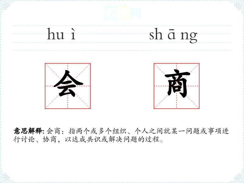 会商一词由“会”和“商”两个字组成。“会”字有聚集、相会的意思,“商”字则指讨论、计算。在古代,会商多用于官方文书,表示官方之间的正式协商。随着时间的推移,其使用范围扩大到各个领域。