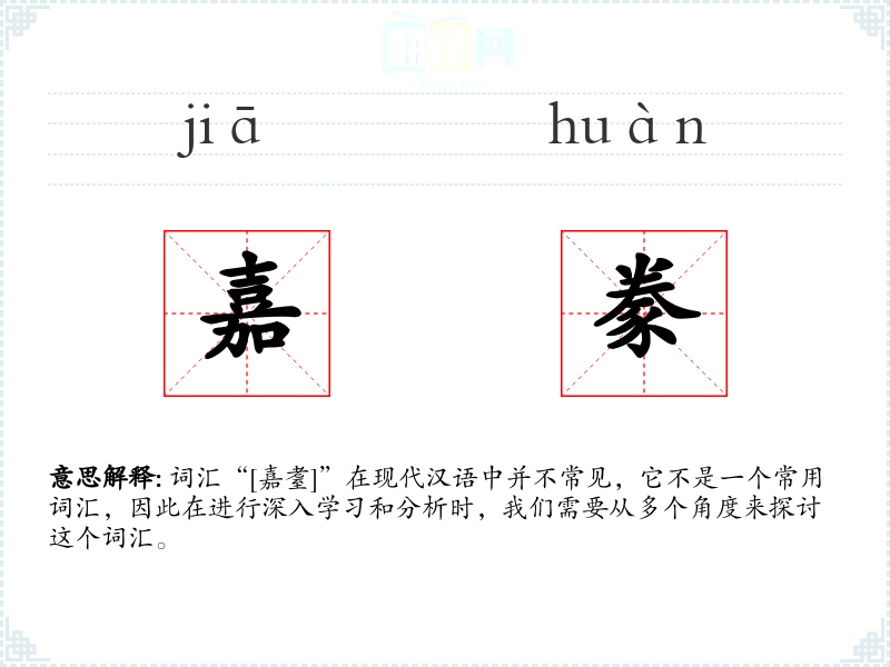 词汇“[嘉耋]”在现代汉语中并不常见,它不是一个常用词汇,因此在进行深入学*和分析时,我们需要从多个角度来探讨这个词汇。