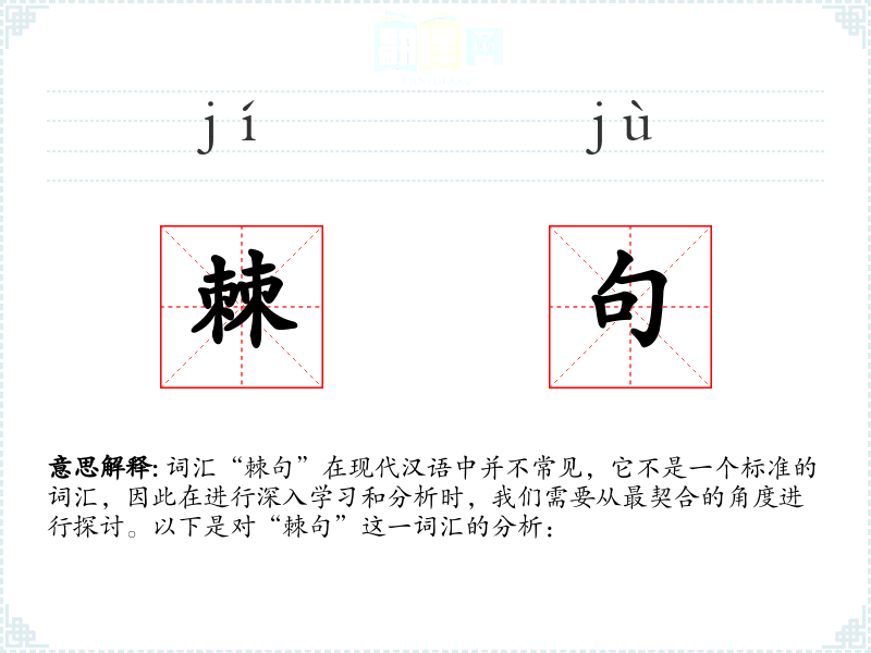 词汇“棘句”在现代汉语中并不常见,它不是一个标准的词汇,因此在进行深入学习和分析时,我们需要从最契合的角度进行探讨。以下是对“棘句”这一词汇的分析:
