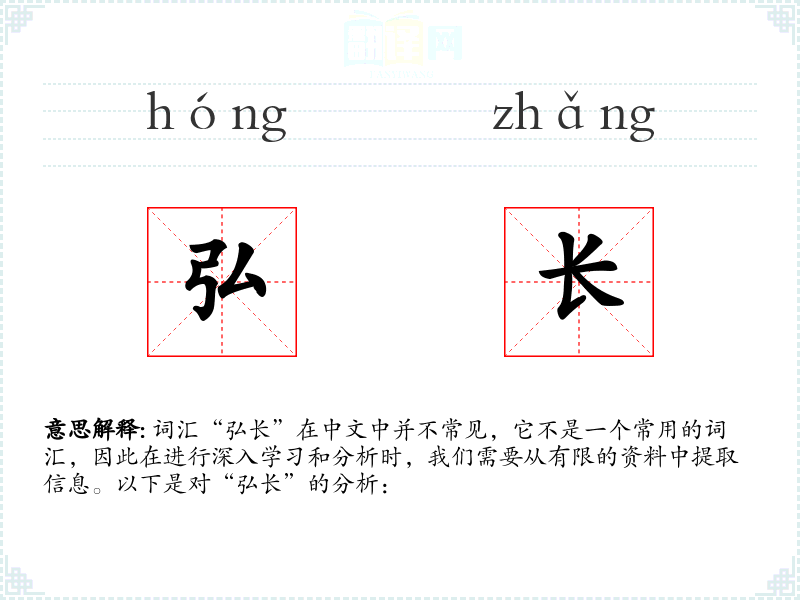 词汇“弘长”在中文中并不常见,它不是一个常用的词汇,因此在进行深入学习和分析时,我们需要从有限的资料中提取信息。以下是对“弘长”的分析: