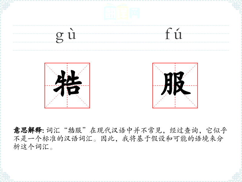 词汇“牿服”在现代汉语中并不常见,经过查询,它似乎不是一个标准的汉语词汇。因此,我将基于假设和可能的语境来分析这个词汇。