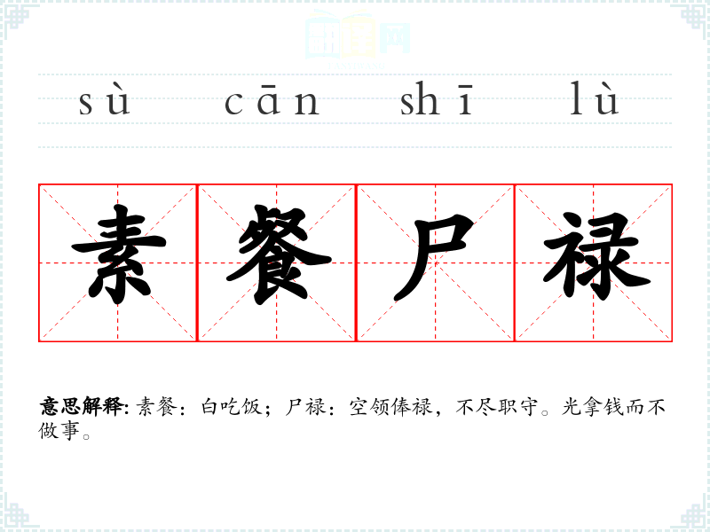 素餐:白吃饭;尸禄:空领俸禄,不尽职守。光拿钱而不做事。