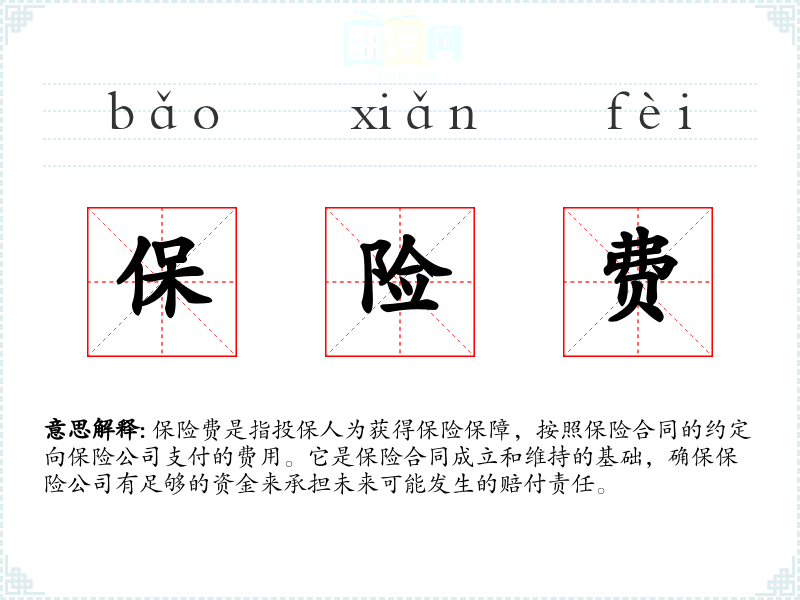 "保险费"的意思解释、保险费是什么意思由翻译网汉语词典查词提供。