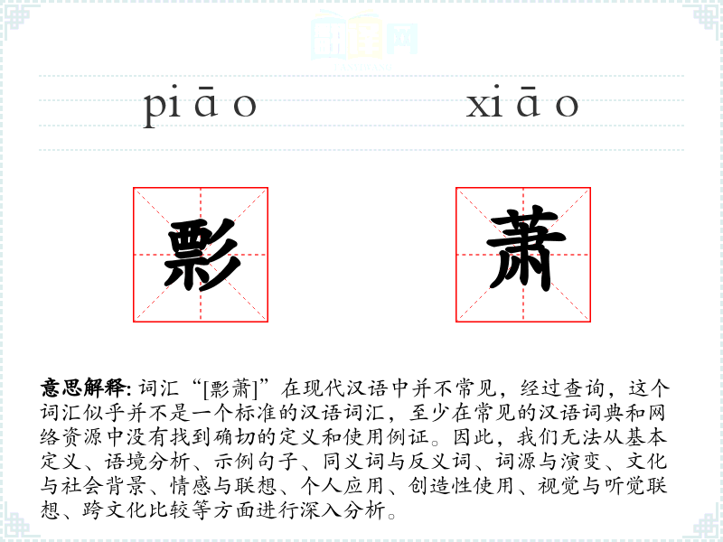 总结来说,对于“[彯萧]”这个词汇,由于缺乏具体的使用和定义,我们无法进行深入的分析。这提醒我们在语言学习中要保持谨慎,对于不常见的词汇要进行多方面的查询和验证。
