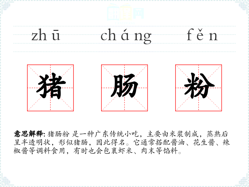 "猪肠粉"的意思解释、猪肠粉是什么意思由翻译网汉语词典查词提供。