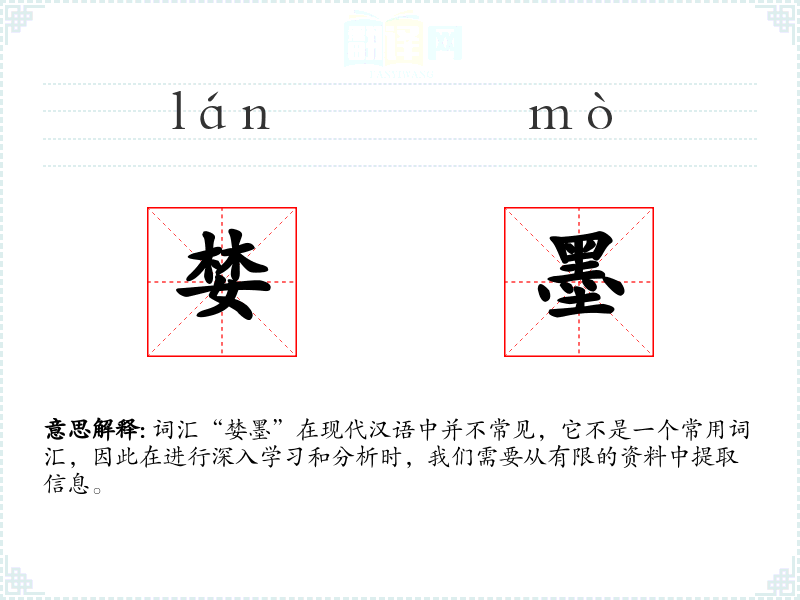 词汇“婪墨”在现代汉语中并不常见,它不是一个常用词汇,因此在进行深入学*和分析时,我们需要从有限的资料中提取信息。