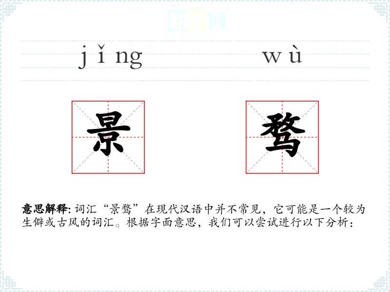 词汇“景骛”在现代汉语中并不常见,它可能是一个较为生僻或古风的词汇。根据字面意思,我们可以尝试进行以下分析: