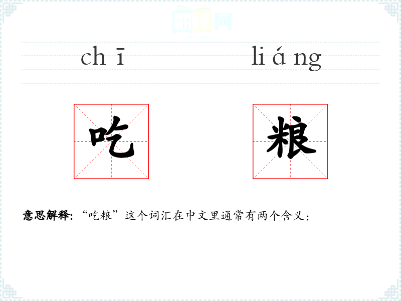 “吃粮”这个词汇在中文里通常有两个含义: