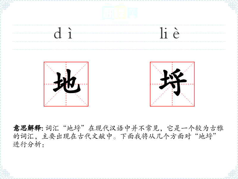 词汇“地埒”在现代汉语中并不常见,它是一个较为古雅的词汇,主要出现在古代文献中。下面我将从几个方面对“地埒”进行分析: