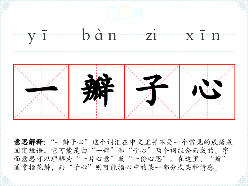 由于“一瓣子心”不是一个标准词汇,它在其他语言或文化中可能没有直接对应的表达。但如果要寻找类似的情感表达,可能会在其他文化中找到强调纯真和真诚的类似词汇或概念。