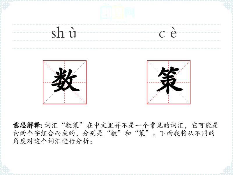 "数策"的意思解释、数策是什么意思由翻译网汉语词典查词提供。