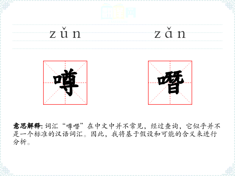 词汇“噂噆”在中文中并不常见,经过查询,它似乎并不是一个标准的汉语词汇。因此,我将基于假设和可能的含义来进行分析。
