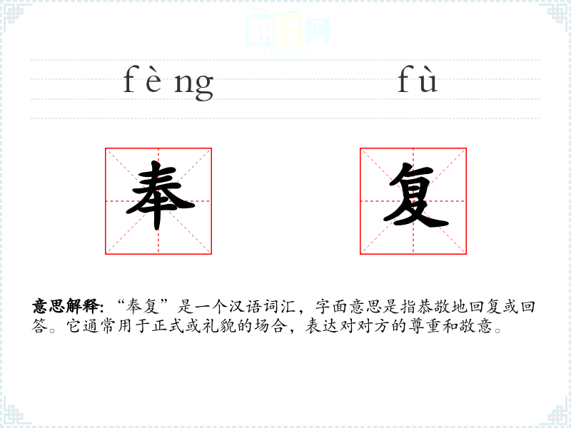 - 反义词:无(因为“奉复”本身是回复的意思,没有直接的反义词)