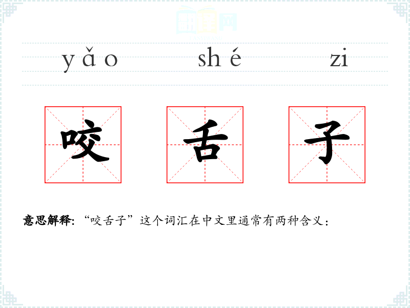 - 字面意思:指的是说话时舌头不小心咬到,导致疼痛或发音不清。