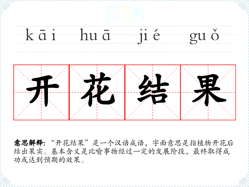 "开花结果"的意思解释、开花结果是什么意思由翻译网汉语词典查词提供。
