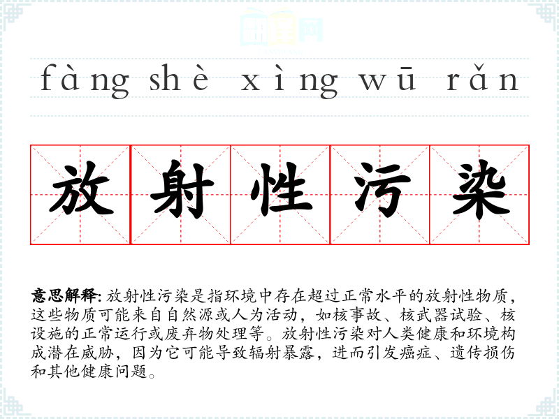 - 同义词:辐射污染、核污染
