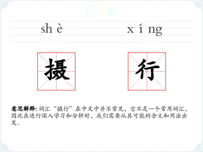 词汇“摄行”在中文中并不常见,它不是一个常用词汇,因此在进行深入学习和分析时,我们需要从其可能的含义和用法出发。