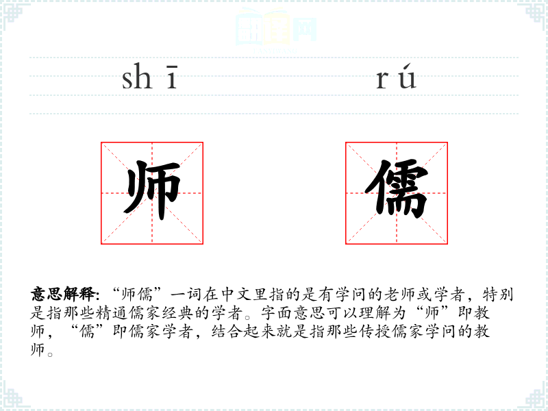“师儒”一词在中文里指的是有学问的老师或学者,特别是指那些精通儒家经典的学者。字面意思可以理解为“师”即教师,“儒”即儒家学者,结合起来就是指那些传授儒家学问的教师。