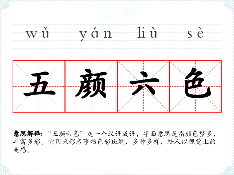 "五颜六色"的意思解释、五颜六色是什么意思由翻译网汉语词典查词提供。