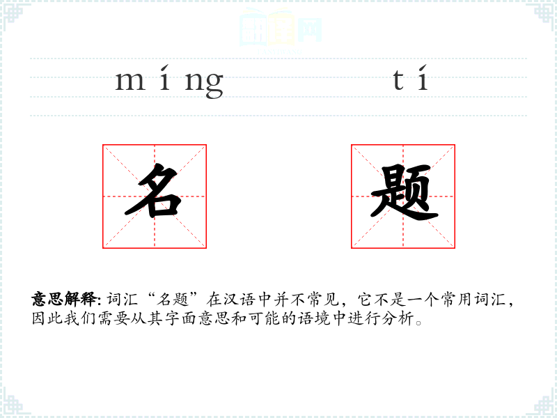 词汇“名题”在汉语中并不常见,它不是一个常用词汇,因此我们需要从其字面意思和可能的语境中进行分析。