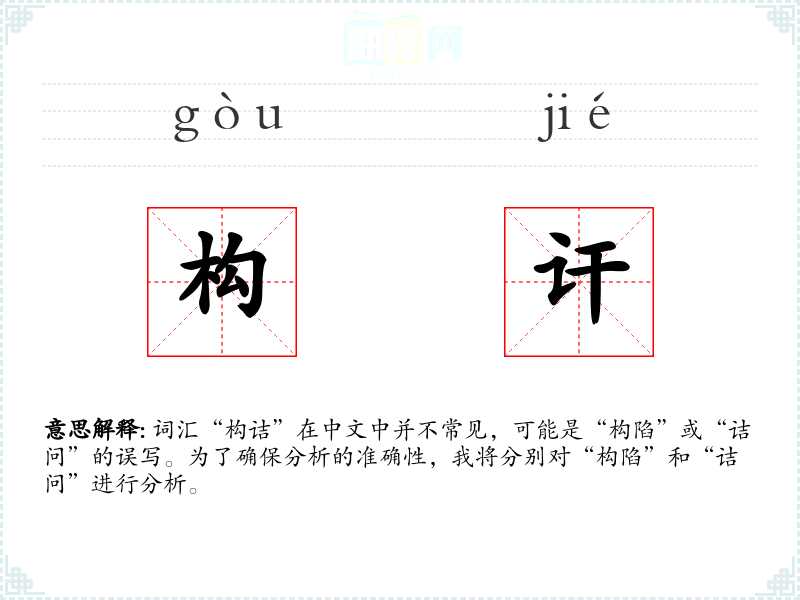 词汇“构诘”在中文中并不常见,可能是“构陷”或“诘问”的误写。为了确保分析的准确性,我将分别对“构陷”和“诘问”进行分析。