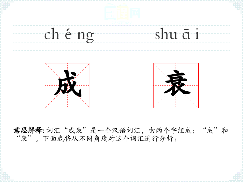 - 词源:“成”和“衰”都是古汉语中的常用字,历史悠久。