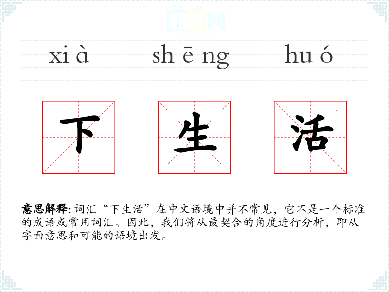 词汇“下生活”在中文语境中并不常见,它不是一个标准的成语或常用词汇。因此,我们将从最契合的角度进行分析,即从字面意思和可能的语境出发。