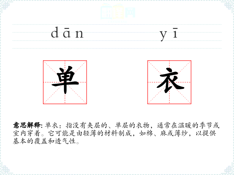单衣的分字解释