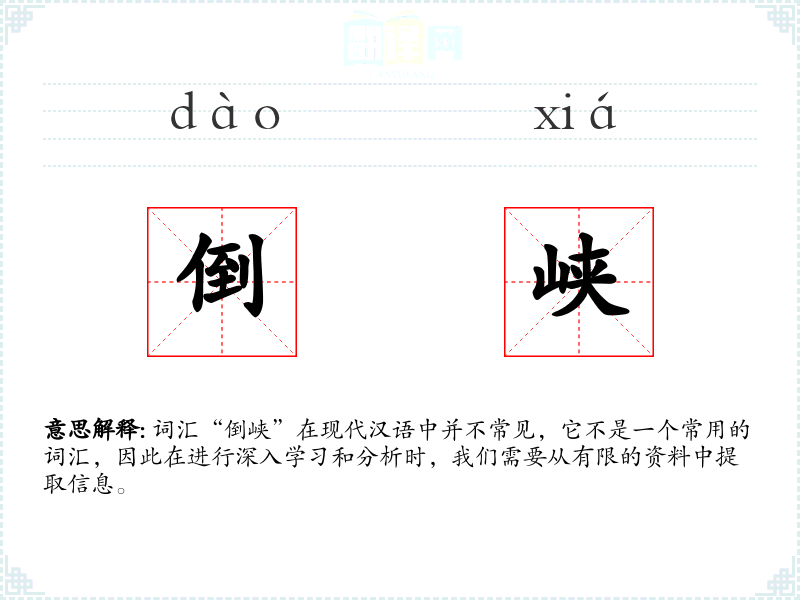 词汇“倒峡”在现代汉语中并不常见,它不是一个常用的词汇,因此在进行深入学*和分析时,我们需要从有限的资料中提取信息。