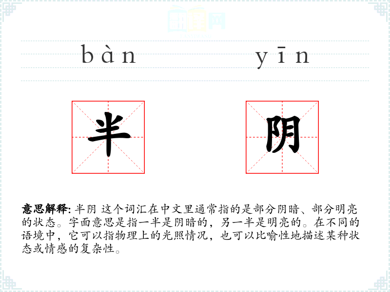 "半阴"的意思解释、半阴是什么意思由翻译网汉语词典查词提供。