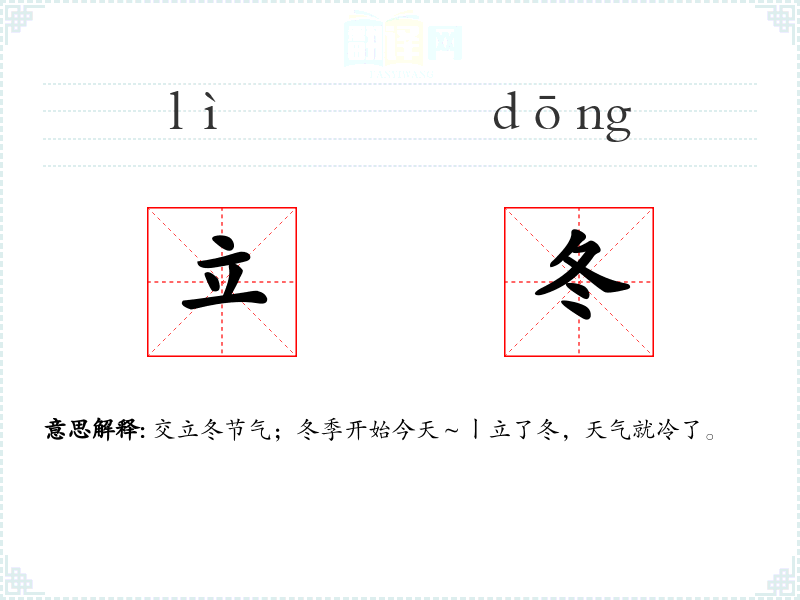 交立冬节气;冬季开始今天~ㄧ立了冬,天气就冷了。