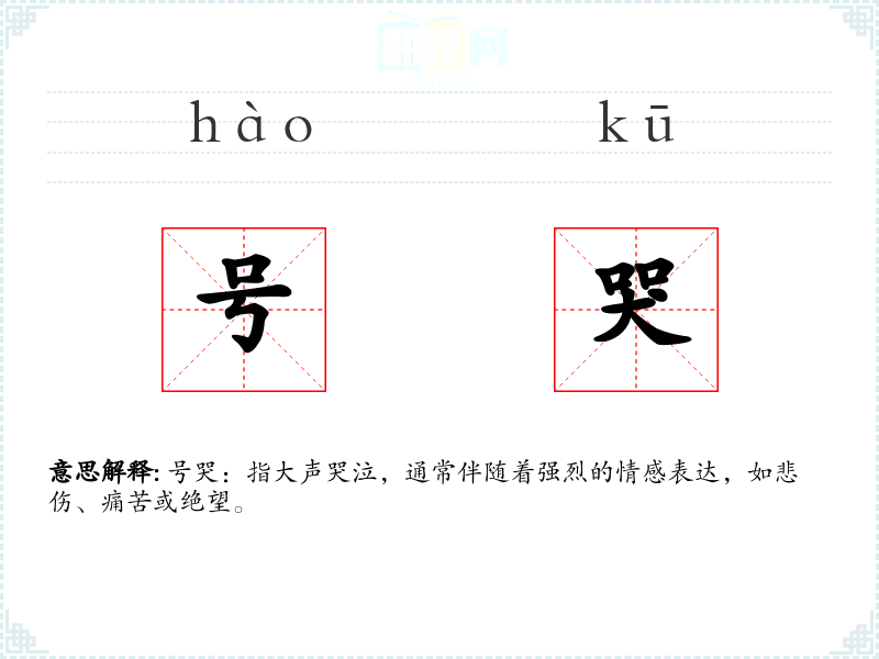 - 口语:在日常对话中,号哭可能用来形容某人哭泣的声音很大,或者情感非常激烈。