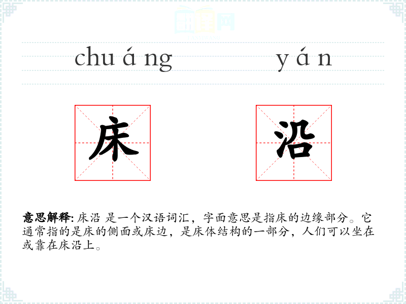 通过对“床沿”这一词汇的深入学,我们可以更好地理解它在不同语境中的使用和意义。在语言学和表达中,掌握这样的词汇有助于我们更准确地传达情感和描述场景,同时也能够丰富我们的语言表达能力。