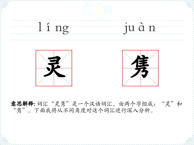 - “灵隽”是一个富有文化内涵的词汇,它不仅形容了文笔和思想的优美与深刻,也反映了中华文化对才华和智慧的推崇。在语言学*和表达中,理解和运用“灵隽”能够丰富我们的词汇量,提升表达的深度和美感。