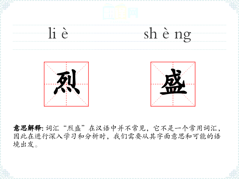 词汇“烈盛”在汉语中并不常见,它不是一个常用词汇,因此在进行深入学习和分析时,我们需要从其字面意思和可能的语境出发。