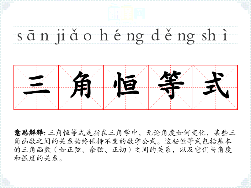 "三角恒等式"的意思解释、三角恒等式是什么意思由翻译网汉语词典查词提供。