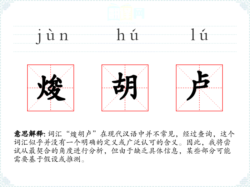 由于“焌胡卢”不是一个标准词汇,我们无法提供一个确切的字面意思和基本含义。