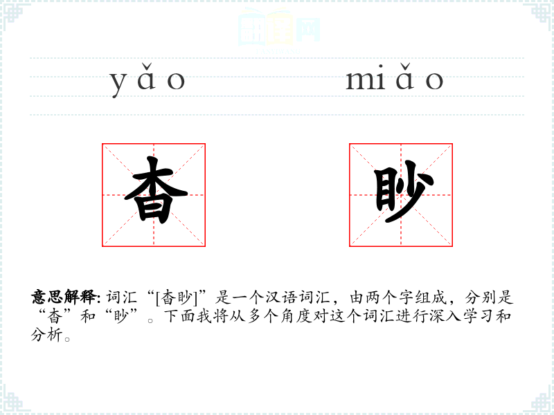 - 词源:“杳”和“眇”都是古代汉语词汇,源自古代对自然现象的观察和描述。
