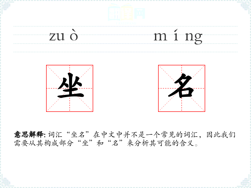 词汇“坐名”在中文中并不是一个常见的词汇,因此我们需要从其构成部分“坐”和“名”来分析其可能的含义。