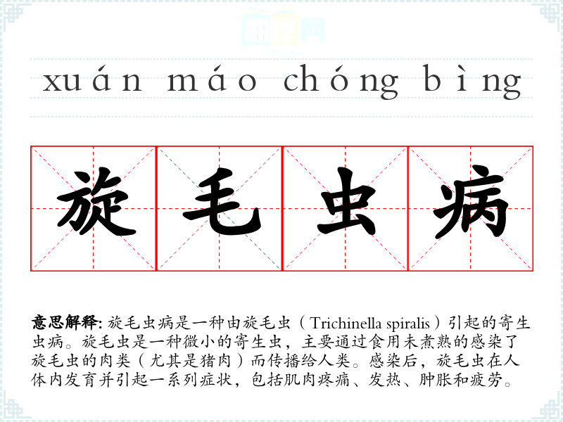 同义词:旋毛虫感染、旋毛虫症 反义词:健康、无病