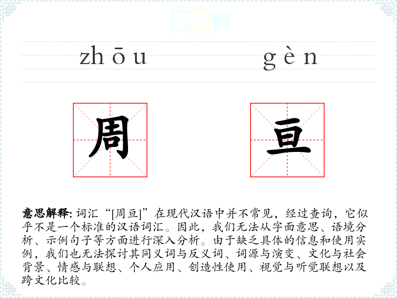 由于“周亘”不是一个已知的词汇,上述分析更多是基于字面构成的推测。在实际的语言学习和应用中,我们应该关注那些有明确含义和广泛应用的词汇。
