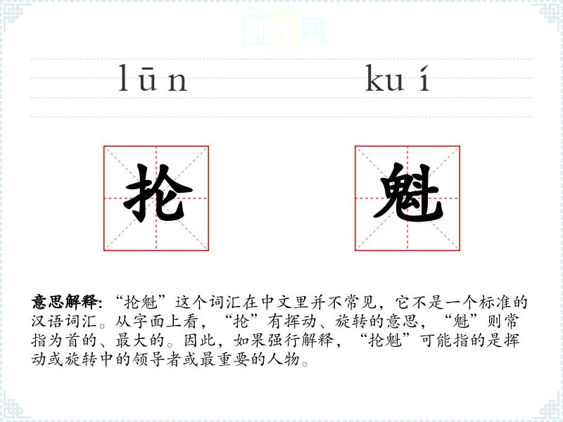 “抡魁”这个词汇在中文里并不常见,它不是一个标准的汉语词汇。从字面上看,“抡”有挥动、旋转的意思,“魁”则常指为首的、最大的。因此,如果强行解释,“抡魁”可能指的是挥动或旋转中的领导者或最重要的人物。