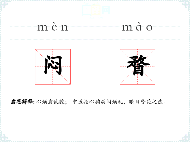貌; 中医指心胸满闷烦乱,眼目昏花之症。