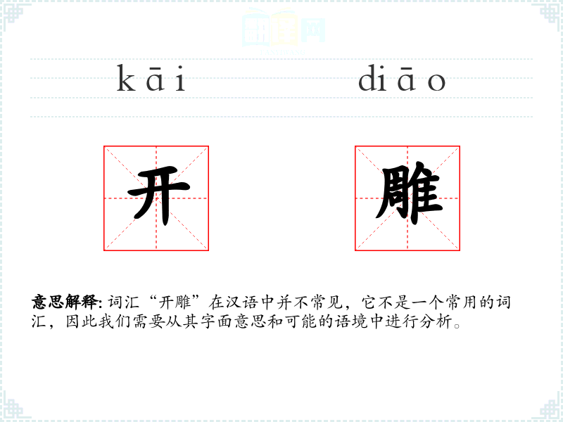 词汇“开雕”在汉语中并不常见,它不是一个常用的词汇,因此我们需要从其字面意思和可能的语境中进行分析。