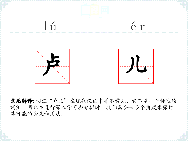 词汇“卢儿”在现代汉语中并不常见,它不是一个标准的词汇,因此在进行深入学习和分析时,我们需要从多个角度来探讨其可能的含义和用法。