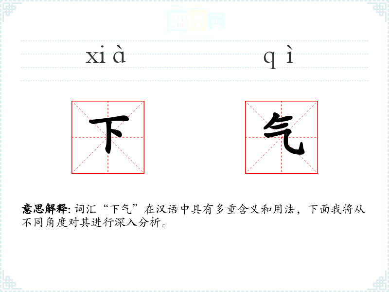 词汇“下气”在汉语中具有多重含义和用法,下面我将从不同角度对其进行深入分析。