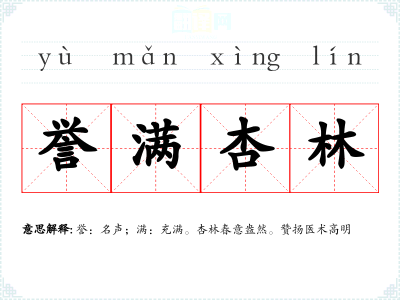 誉:名声;满:充满。杏林