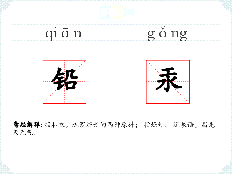 铅和汞。道家炼丹的两种原料; 指炼丹; 道教语。指先天元气。