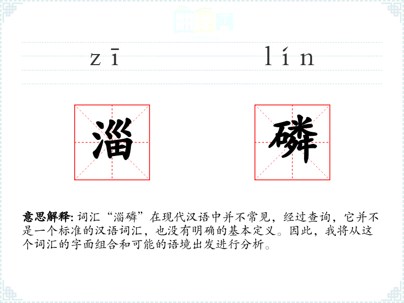 词汇“淄磷”在现代汉语中并不常见,经过查询,它并不是一个标准的汉语词汇,也没有明确的基本定义。因此,我将从这个词汇的字面组合和可能的语境出发进行分析。