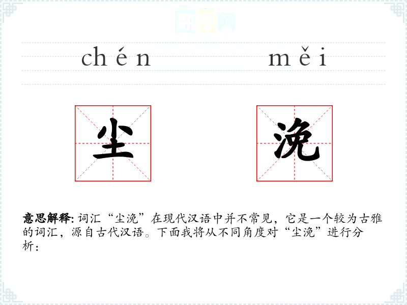 词汇“尘浼”在现代汉语中并不常见,它是一个较为古雅的词汇,源自古代汉语。下面我将从不同角度对“尘浼”进行分析: